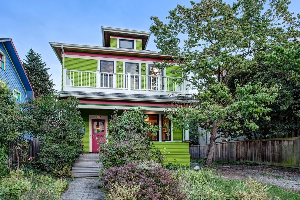 Benjamin Moore Moonshine for a Victorian Exterior with a Pink Door and Exterior by Board and Vellum