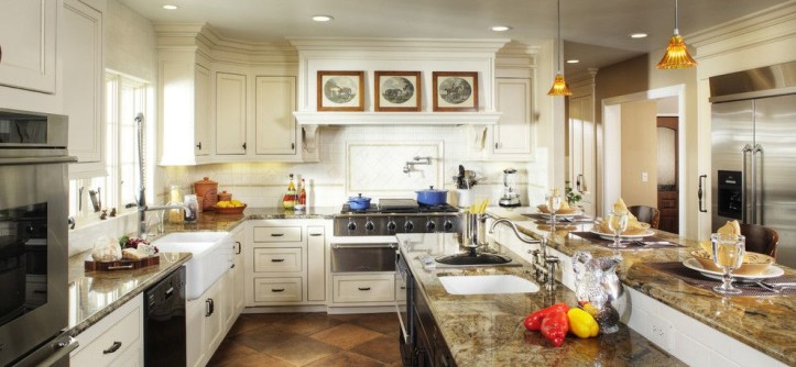 Crema Pearl Granite for a Traditional Kitchen with a Pendant Lighting