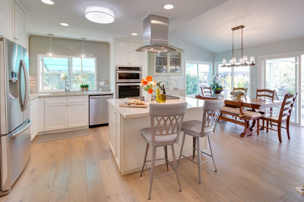 Hallmark Flooring for a Beach Style Kitchen with a Marble Mosaic Tile and Carlsbad Beach Cottage Contemporary by Karen Cole Designs