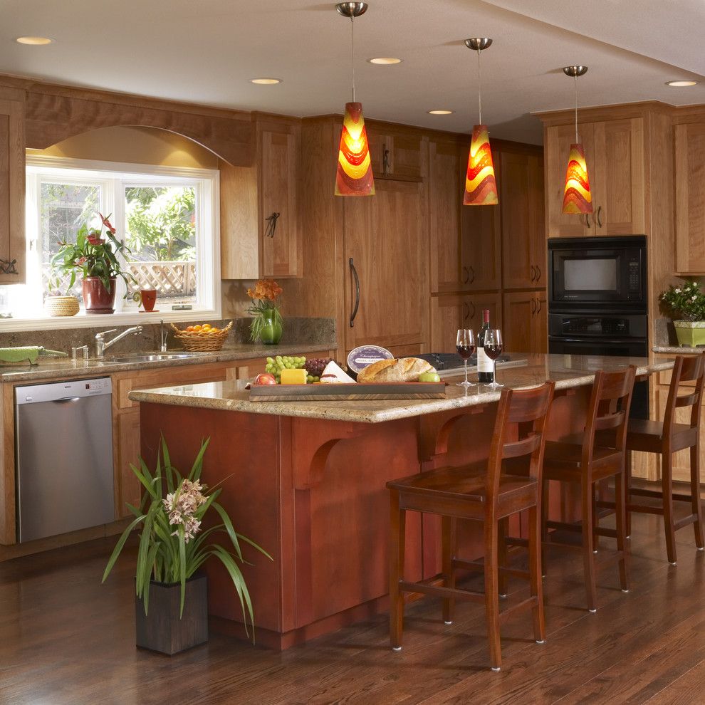 How to Dispose of Light Bulbs for a Traditional Kitchen with a Pendant Lighting and Kitchen by Charlie & Co. Design, Ltd
