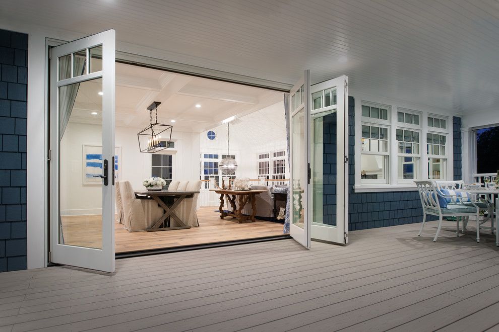 How to Install Bifold Doors for a Contemporary Deck with a Blue Shingle Siding and Marvin Windows and Doors by Marvin Windows and Doors