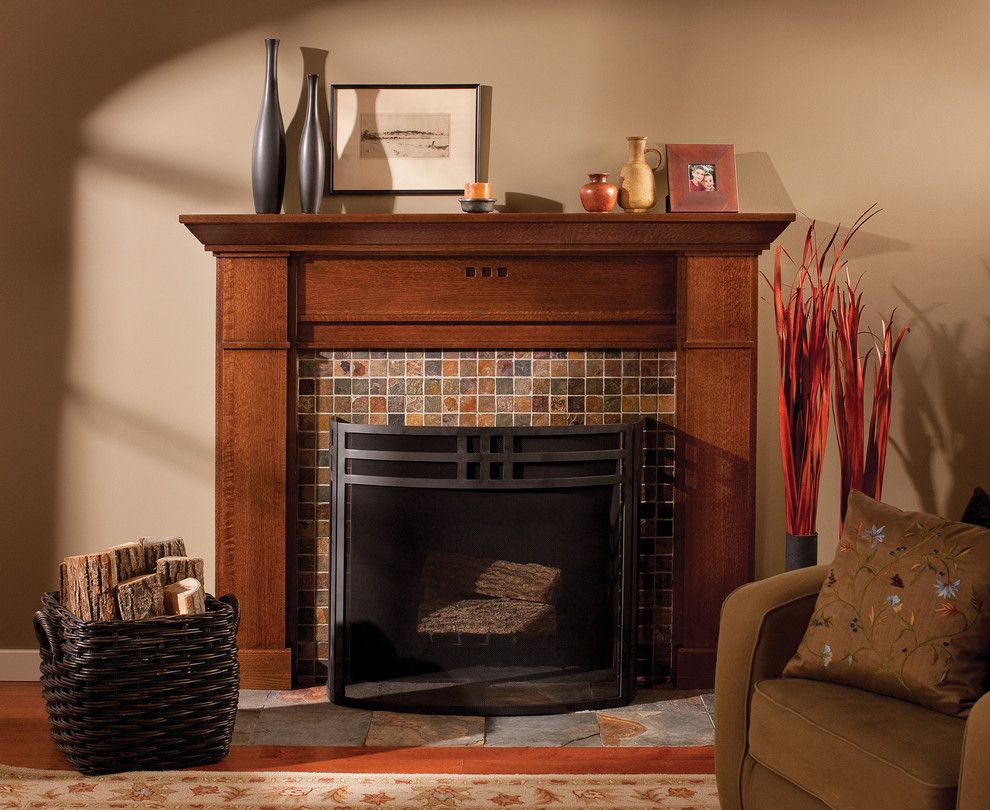 Kate Lo Tile for a Craftsman Living Room with a Built in and Mantel of a True Craftsman by Dura Supreme Cabinetry