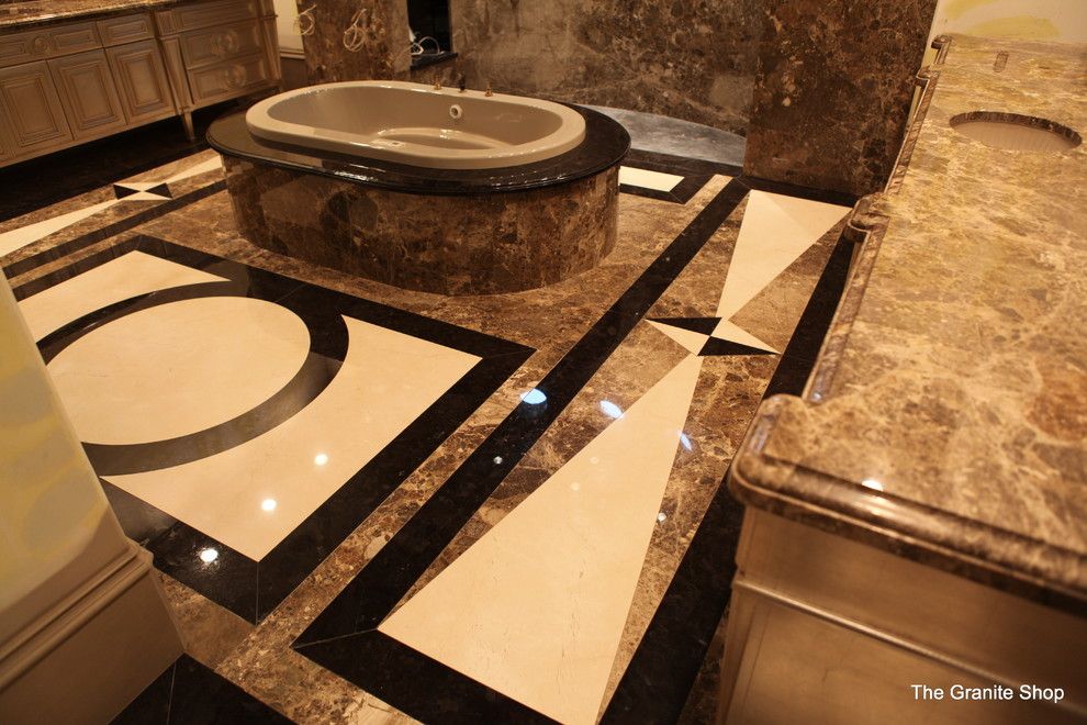Munire for a Modern Bathroom with a Slab Floor and Modern Slab Bathroom Floor with Design & Slab Shower by the Granite Shop