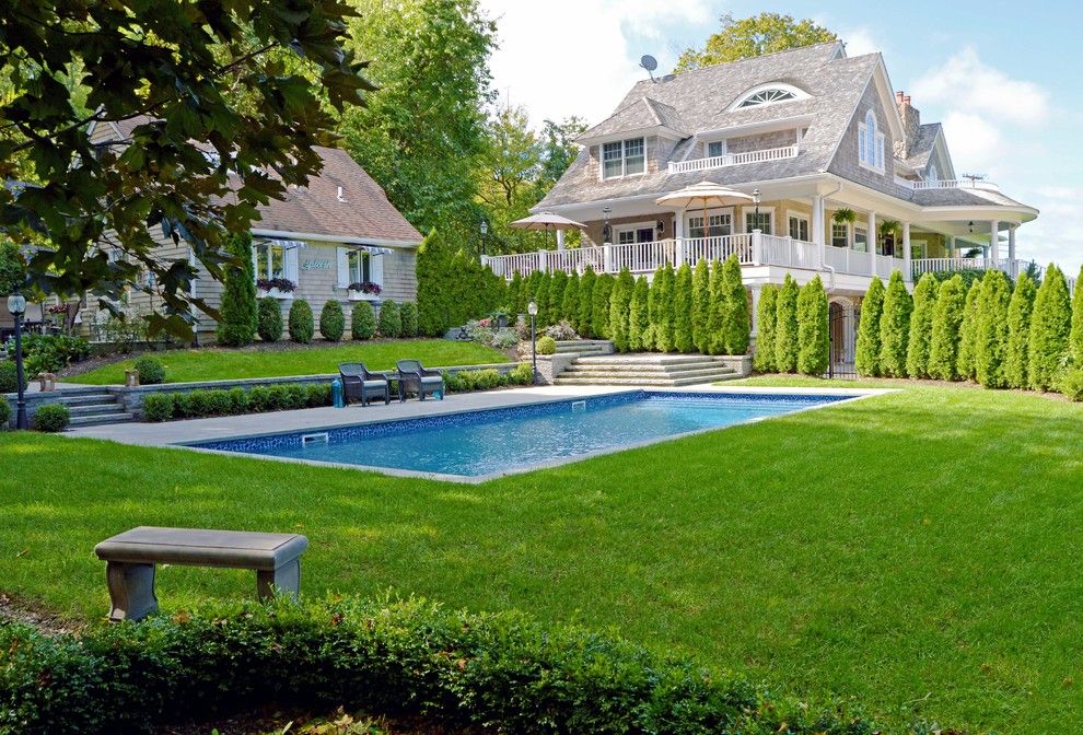 Northport Water for a Traditional Pool with a Automatic Cover and Northport Waterfront Gunite Swimming Pool by Haven Pools, Inc.