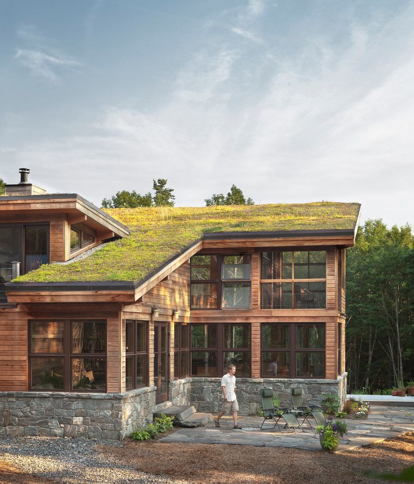 Pallet Shed for a Rustic Exterior with a Stone Wall and Lake Luzerne House by Phinney Design Group