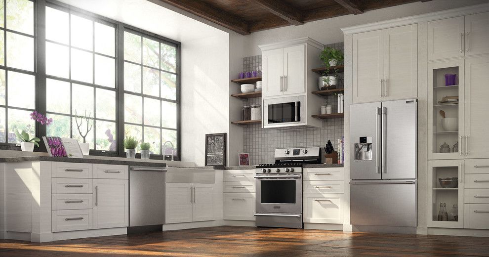 Paris Texas Hardware for a Contemporary Kitchen with a Wood Ceiling and Frigidaire by Frigidaire®