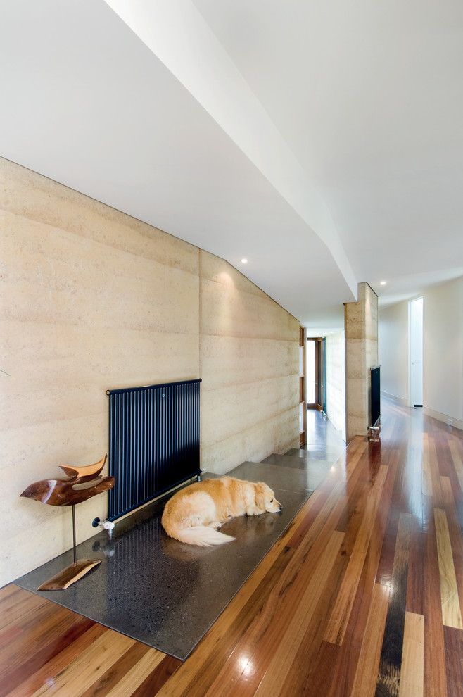 Pro Source Flooring for a Modern Entry with a Hearth and Hill House by Mihaly Slocombe