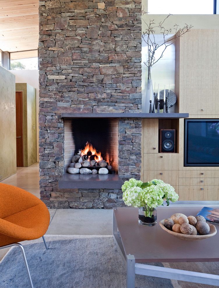 Rumford Fireplace for a Contemporary Living Room with a Mantle Driftwood and Bouldin Creek Residence by Restructure Studio