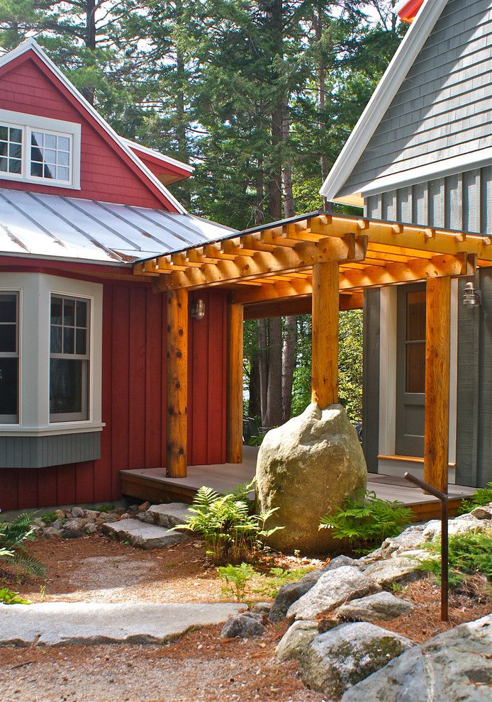 Uncommon Goods.com for a Rustic Exterior with a Boulder and Lake Luzerne House by Phinney Design Group